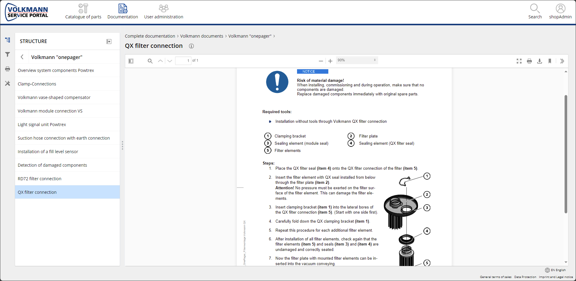 Im Volkmann Service Portal (VSP) finden Sie umfassende Informationen und Dokumente zu einer von Volkmann hergestellten Maschine oder Anlage. Es werden unter anderem Bedienungsanleitungen, Schulungsunterlagen, Wartungsanleitungen, Datenblätter und Zeichnungen zur Verfügung gestellt. Die Zeichnungen sind hochauflösend (Vektorformat) und können bis ins kleinste Detail vergrößert werden. Mit diesen jederzeit verfügbaren Informationen ist das VSP eine optimale Unterstützung für die Produktion, Instandsetzung und die Ersatzteilbeschaffung.